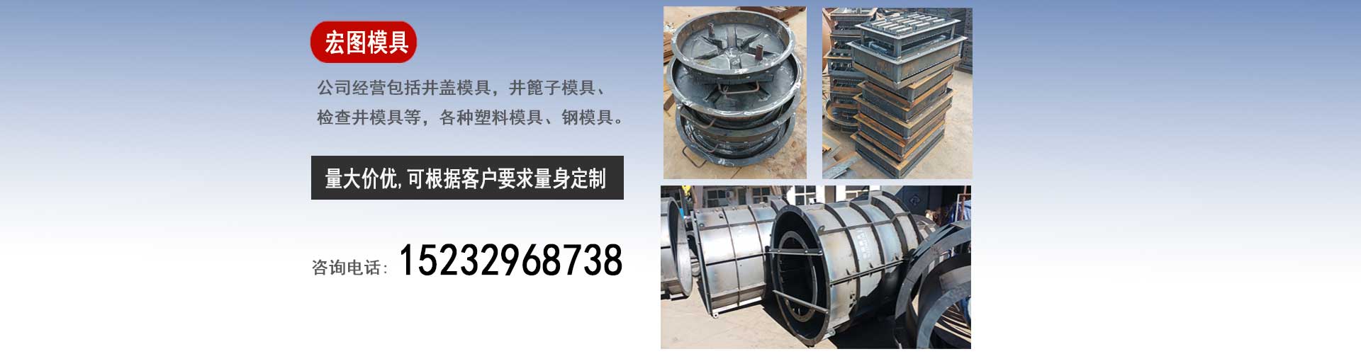保定宏圖檢查井蓋模具廠是一家集設(shè)計(jì)、研發(fā)、生產(chǎn)、銷售為一體的企業(yè),我廠主要經(jīng)營(yíng):水泥井蓋模具,預(yù)制井蓋塑料模具,下水井蓋鋼模具,雨水井篦子模具,排水井篦子塑料模具,污水井篦子鋼模具,混凝土檢查井模具,污水檢查井鋼模具等。我廠的賣(mài)的不僅僅是模具,更是一份保障,一份誠(chéng)信,一份放心,我廠的銷售宗旨是"以誠(chéng)信為本,做最好的模具,賣(mài)最便宜的價(jià)格"。保定宏圖檢查井蓋模具廠的模具產(chǎn)品銷往全國(guó)的30多個(gè)省市區(qū)及海外受到了廣大用戶的好評(píng)。